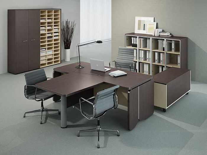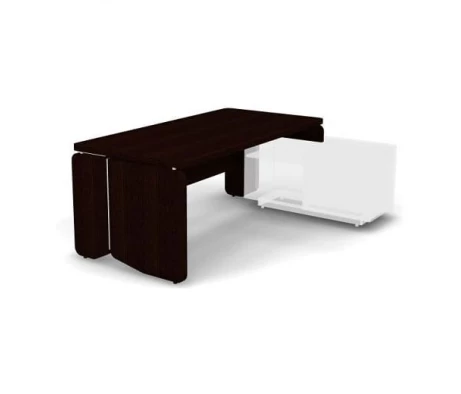Вернемся к цветовому оформлению данного комплекта. Венге – темный, насыщенный цвет, который выгодно подчеркивает дизайн кабинета. Такое цветовое решение не требует помещение с большим пространством, даже в небольшом офисе комплект будет выглядеть уместно.