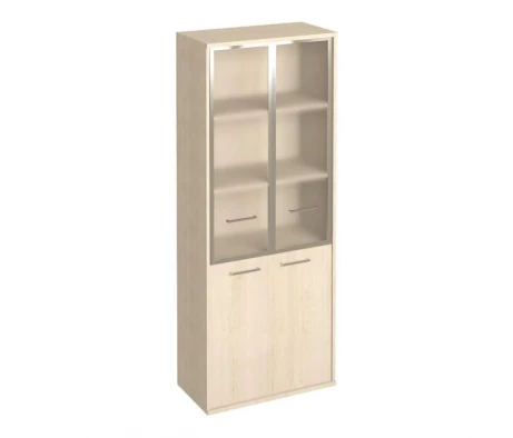 Мебель для персонала представлена шкафами и тумбами в более светлом цвете "Клен", что придает им легкий и стильный внешний вид. Хорошо продуманные системы хранения, с качественной фурнитурой и вместительными полками, создают комфортную рабочую атмосферу.